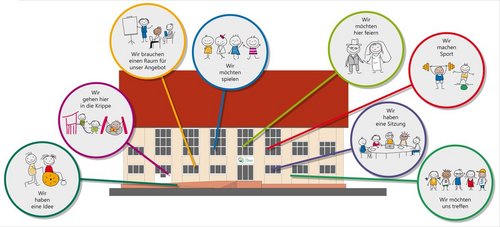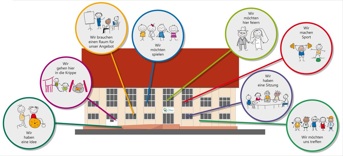 Zum einen wird es Angebote geben, die verschiedene Einrichtungen, Vereine für Einzelpersonen oder Gruppen in den Räumlichkeiten der „Arche 4“ anbieten. Diese werden dann von den Anbietern beworben und man meldet sich bei diesen an.